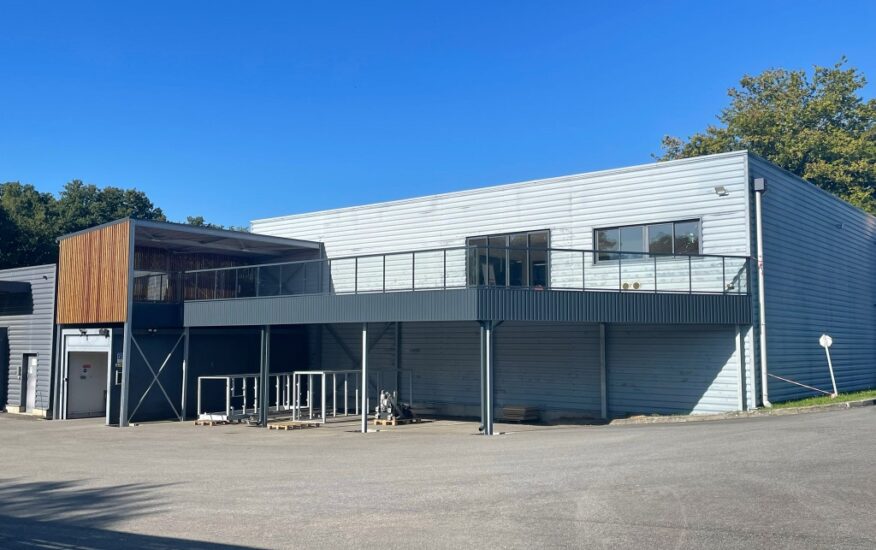Bâtiment en structure acier aux Rairies pour agrandir les locaux de l’entreprise. Zone logistique, bureaux à l’étage, vaste terrasse panoramique en bois. Plans sur mesure.