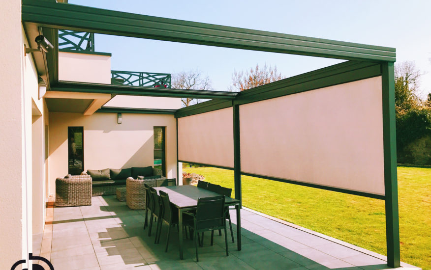 Maison contemporaine avec toiture monopente, terrasse, baies vitrées, piscine, garage